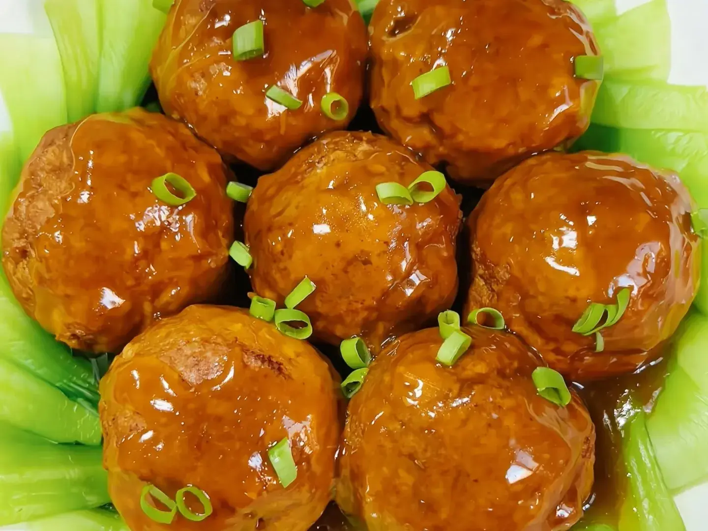 6、最后把煮好的狮子头铺在上海青,即可开吃。